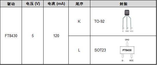 FT8430是辉芒微电子(深圳)有限公司顺应市场需求研发出的一款高性能、高精度、低成本的非隔离高压Buck开关电源,主要应用在需要低压或小功率恒压输出的场合。该产品特别适合小家电、智能照明和MCU的供电需求,其亮点是能完全能替代阻容方案。目前该产品可以提供TO-92和SOT23两种封装。 一、主要特点: |